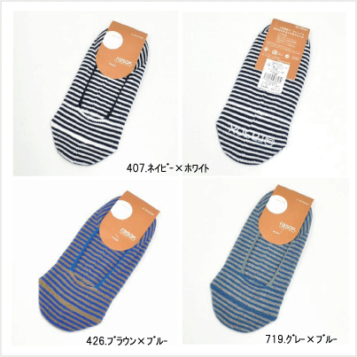 rasox ラソックスブークレーボーダーカバ− 商品詳細 Size F Qual 綿・アクリル・その他 Color 407.ネイビー×ホワイト / 426.ブラウン×ブルー / 719.グレー×ブルー Made in Japan Size S 22-24cm M 24-26cm