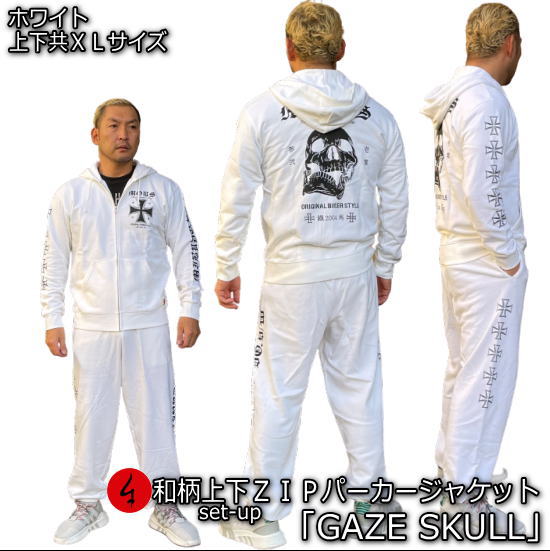 【楽天スーパーSALE 半額 50%OFFセール】【在庫処分】【即配 ブラック XLサイズ 裏パイル】【最大P29倍セール】和柄 上下セット ZIP パーカー ジャケット「GAZE SKULL」(ゲーズスカル)