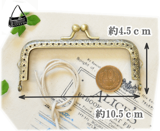 \差し込みタイプはこちら/がま口 口金 約10.5cm 差し込みタイプ↓関連商品はこちら↓こちらのがま口を使ったキットはこちらがま口固定針ナチュラルはこちらがま口固定針カラフルはこちら10個セットはこちらその他のがま口金具はこちらからどうぞ■がま口に関しまして■▼画像ではワックスコードが載っておりますが、紙ヒモの場合がございます。
