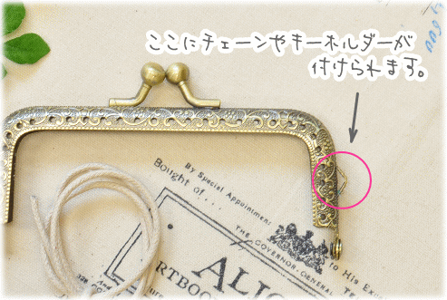 ■おすすめカテゴリその他 がま口金具はこちらカンが2ヶ所についていますので、チェーンやキーホルダーをつけることができます。