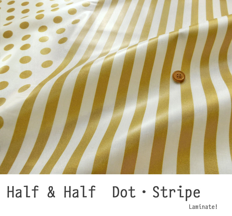 ▼【ツヤ消しラミネート】**ハーフ&ハーフ**『ドット☆ストライプ』≪オックスプリント≫※107cm幅 コットン100% 表:ツヤ消しビニールコーティング●