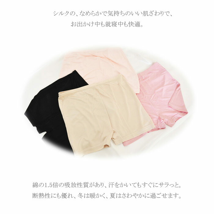 ベルロンド べるろんど Belle rondeau Bellerondeau シルク ショーツ 絹 ボクサー ゆったり パンツ ロング 股ずれ ショートパンツ Spec 表記サイズ ヒップ M:約87-95cm L:約92-100cm XL:約97-105cm XXL:約102-110cm 素材 シルク 洗濯表示 生地の伸縮 伸縮性あり カラー ブラック ローズ ベージュ ピンク クリーム 商品説明 肌触りが気持ちいい、長めのシルクボクサータイプです。